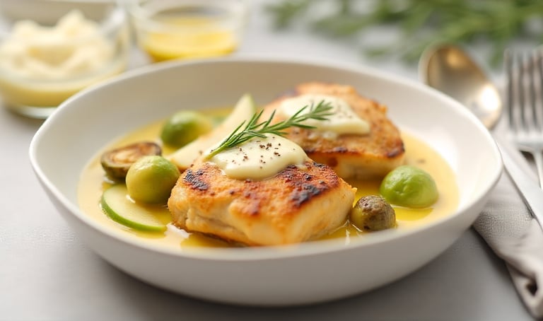 Sear the Chicken: Heat olive oil and butter in a large skillet over medium-high heat. Add chicken and sear 4–5 minutes per side until golden brown and cooked through (internal temp 165°F / 74°C).