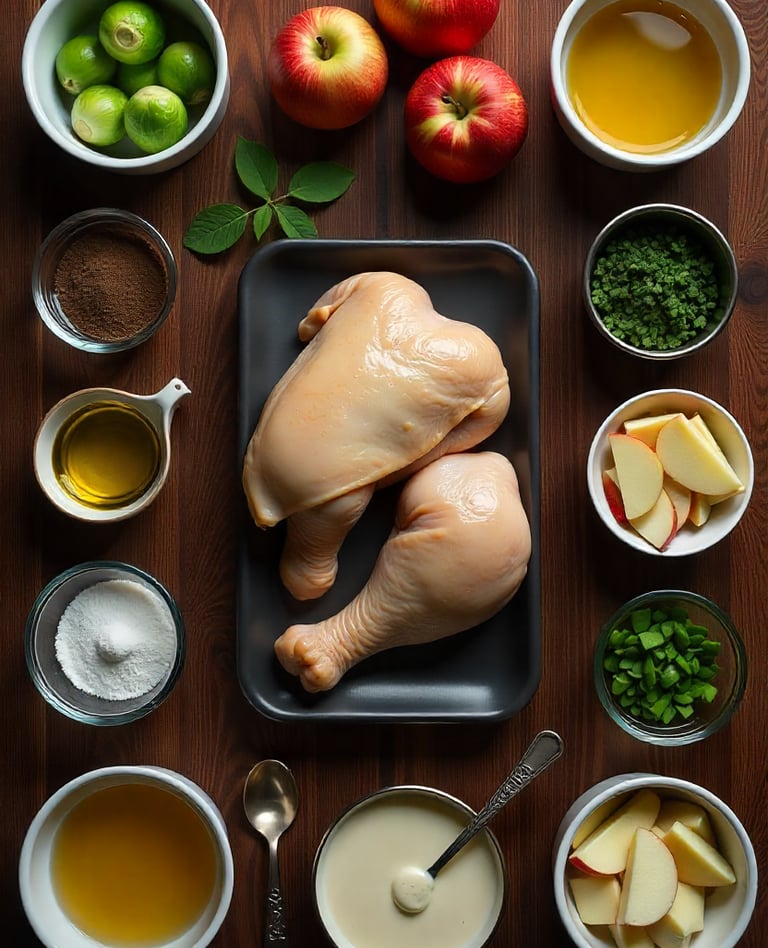 Combine Everything: Return the chicken, Brussels sprouts, and apple mixture to the pan. Spoon sauce over everything and simmer on low for 2–3 minutes to blend flavors.