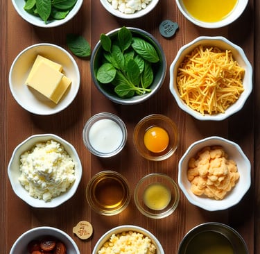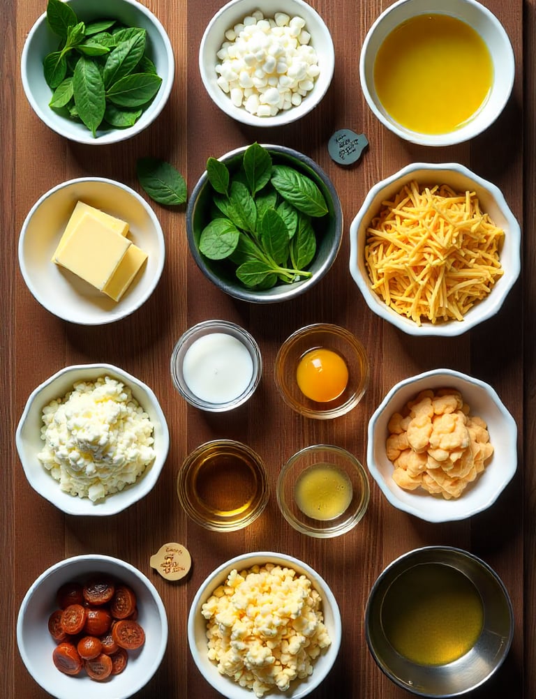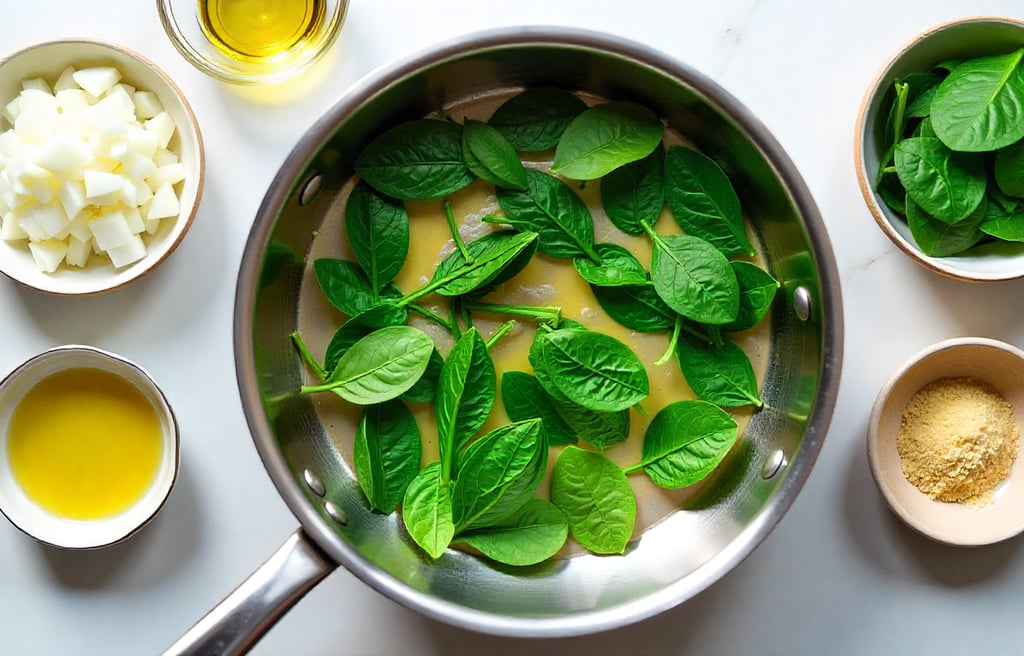 Prepare the Spinach Filling: Heat olive oil in a skillet over medium heat. Add onion and cook 3–4 minutes until soft. Add garlic and cook 30 seconds more.