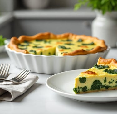 Keto Crustless Spinach Quiche — Silky custard, tender spinach, and a blanket of melted cheese, all without a crust dragging in extra carbs. The texture lands between a delicate frittata and a classic quiche, with gentle cream richness that never feels heavy. Nutmeg and garlic lift the greens; Parmesan sharpens the finish. It slices clean, reheats flawlessly, and works for breakfast, lunch, or a light dinner with salad.