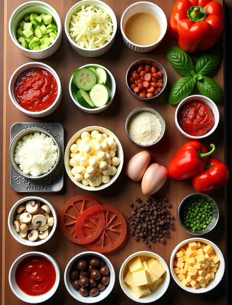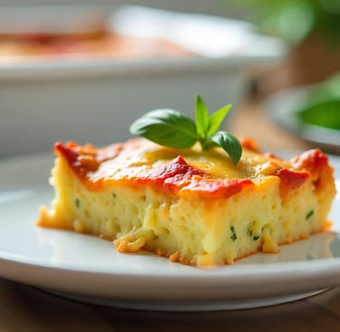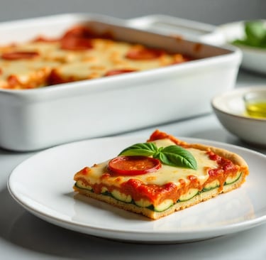 All the joy of a loaded slice, none of the flour. A savory zucchini “crust” bakes up firm and cheesy, then gets smothered in a meaty marinara and a bubbling top layer of mozzarella. Pepperoni, olives, or mushrooms punch in classic pizzeria flavor while the edges caramelize for that true pie effect. You get forkfuls of sauce, cheese pull, and spice—without the wheat bloat.