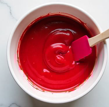 Create the Batter: Slowly add the dry mixture into the wet ingredients. Stir until smooth and thick. Adjust food coloring for desired red hue.